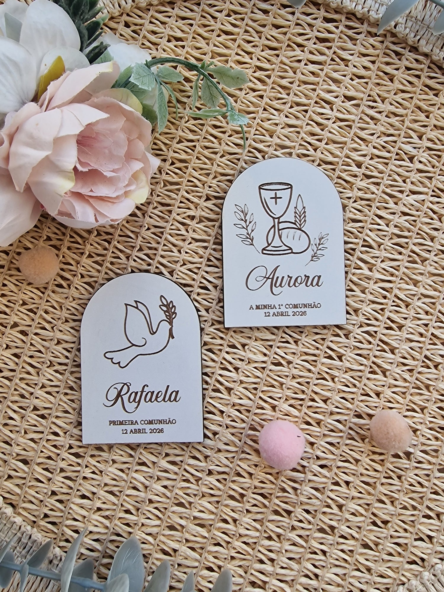 Placas, ementas, placar e marcadores de 1ª comunhão