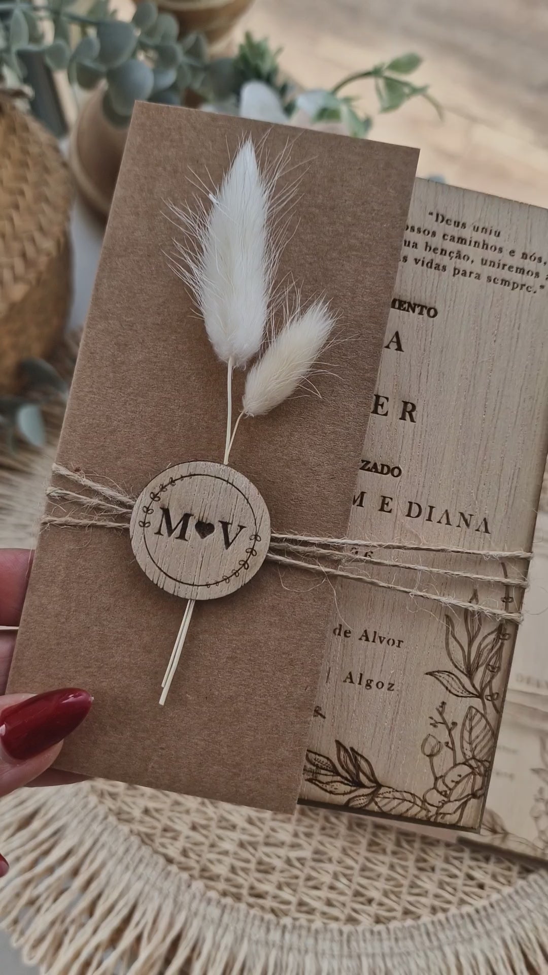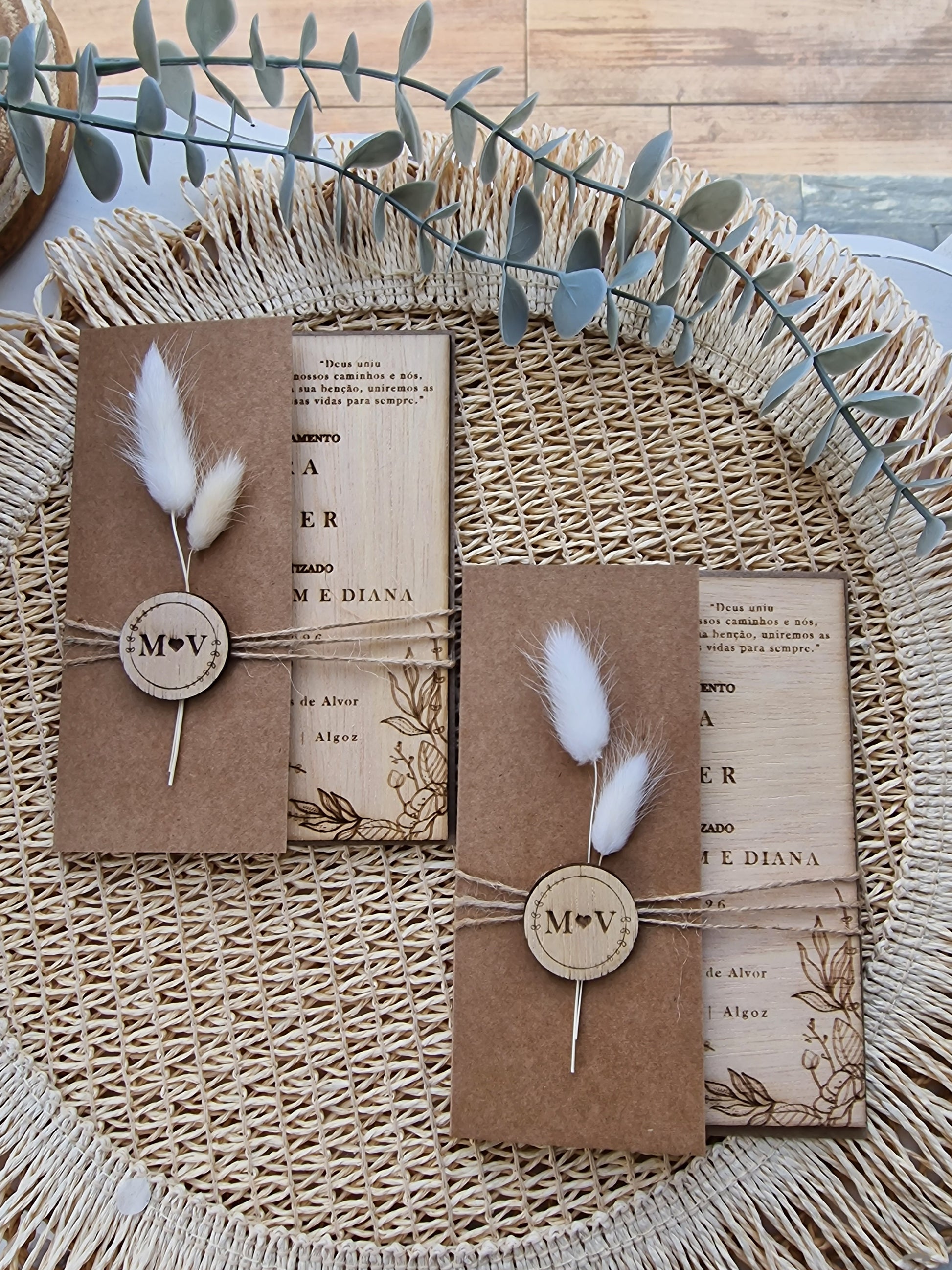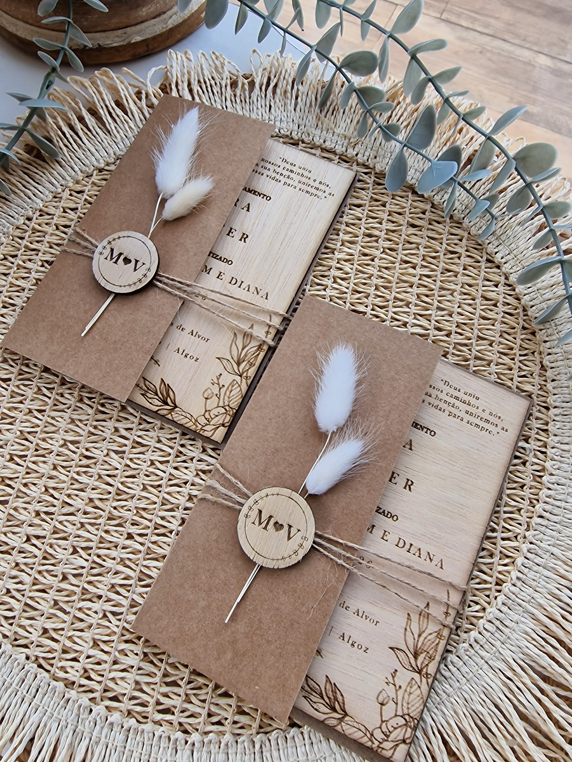 Convite de casamento e batizado em madeira natural de 3mm com gravação a laser