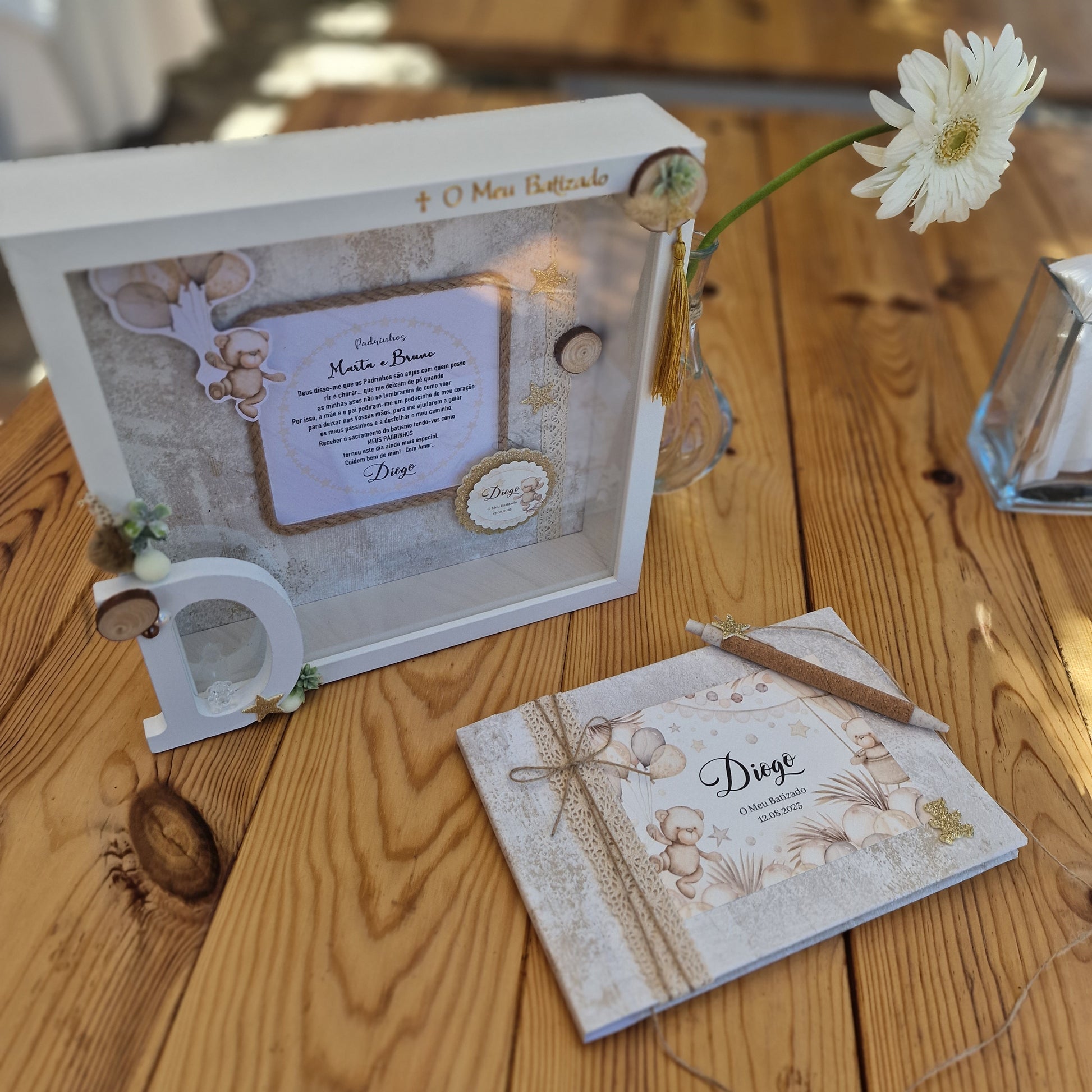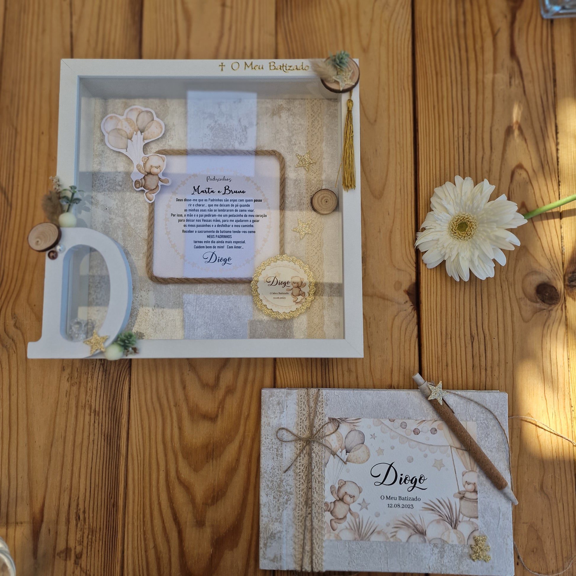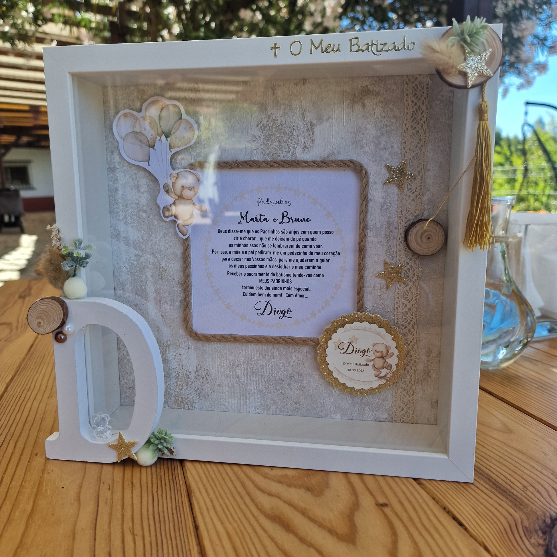 Cadre ours en peluche avec dédicace des parrains et marraines