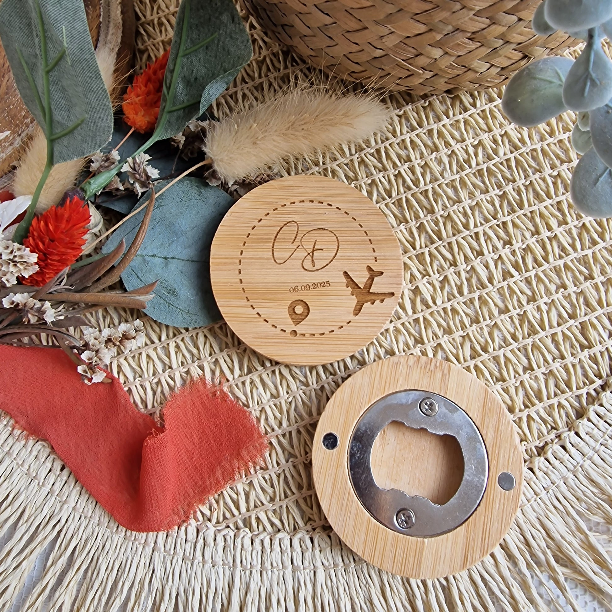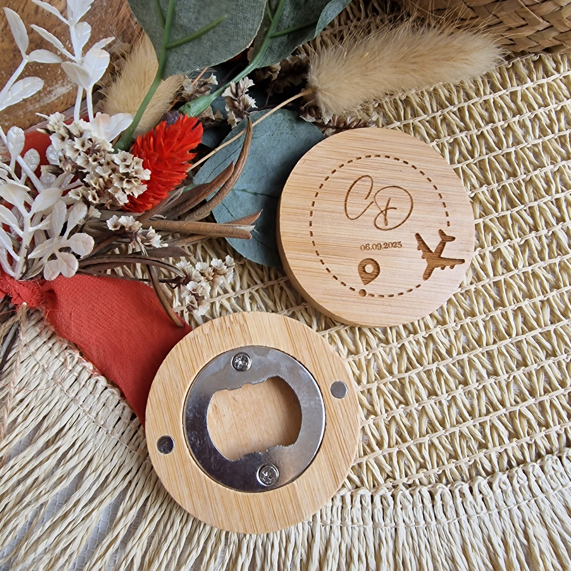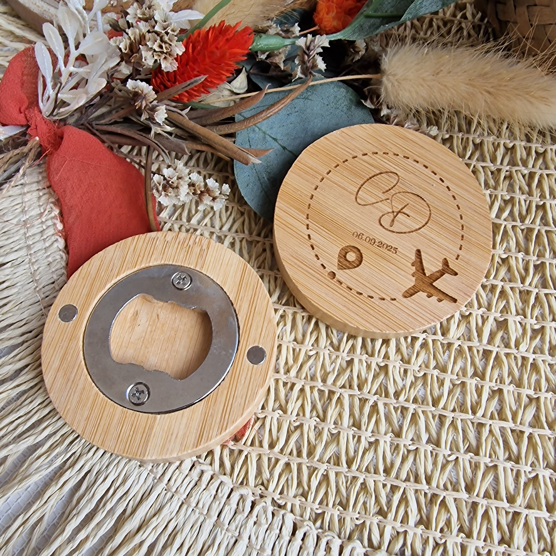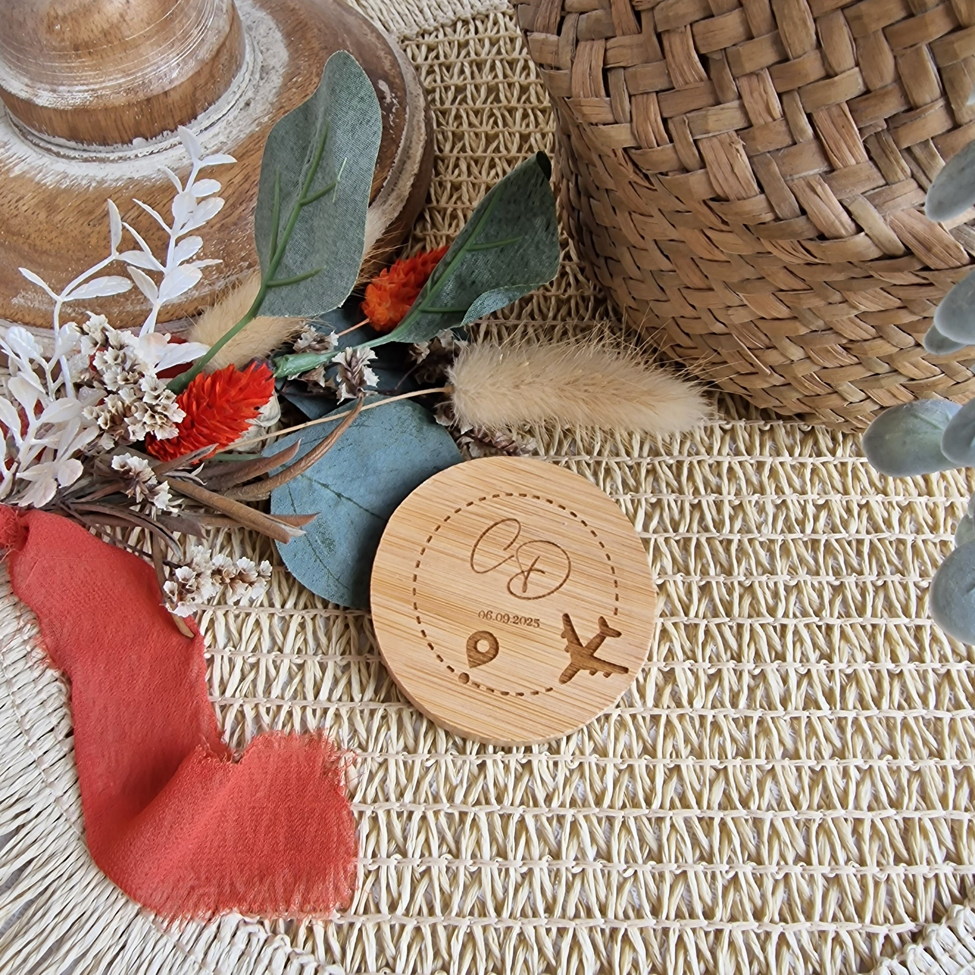 Magnet et tiroir en bambou personnalisés mesurant environ 6 cm de diamètre