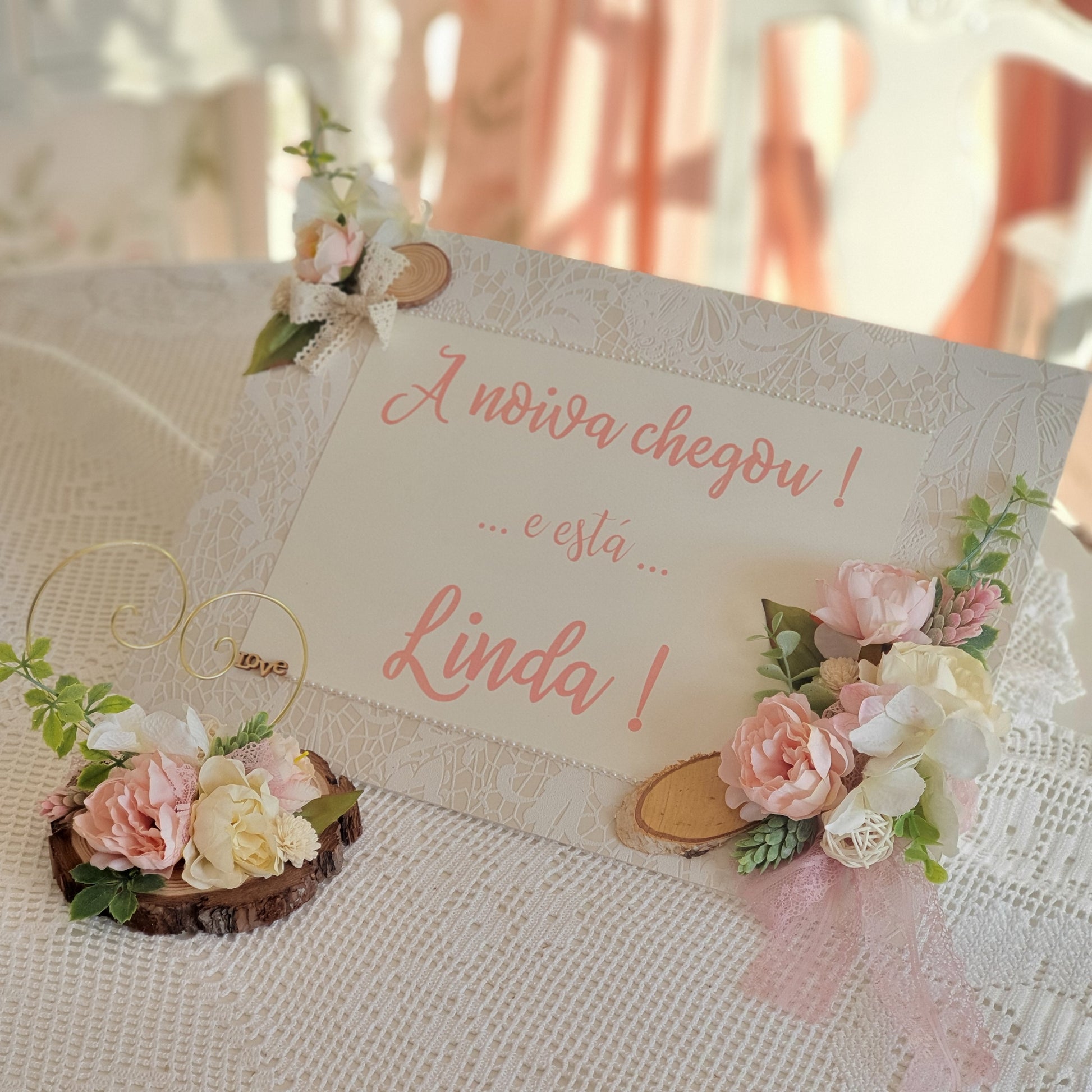 Plaque avec texte personnalisé et décoration florale