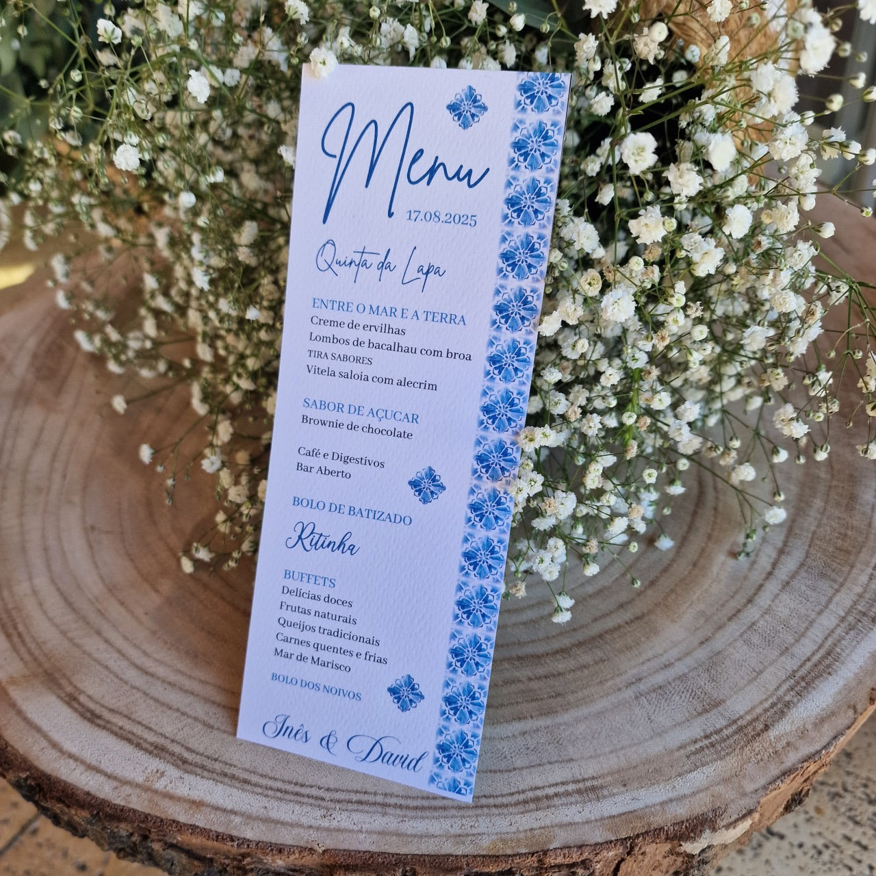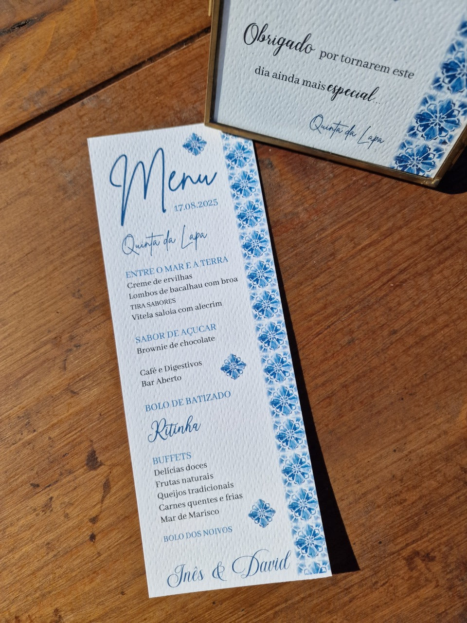 OBS: colocar o nome da quinta, nome dos noivos, data, pratos principais e Buffets