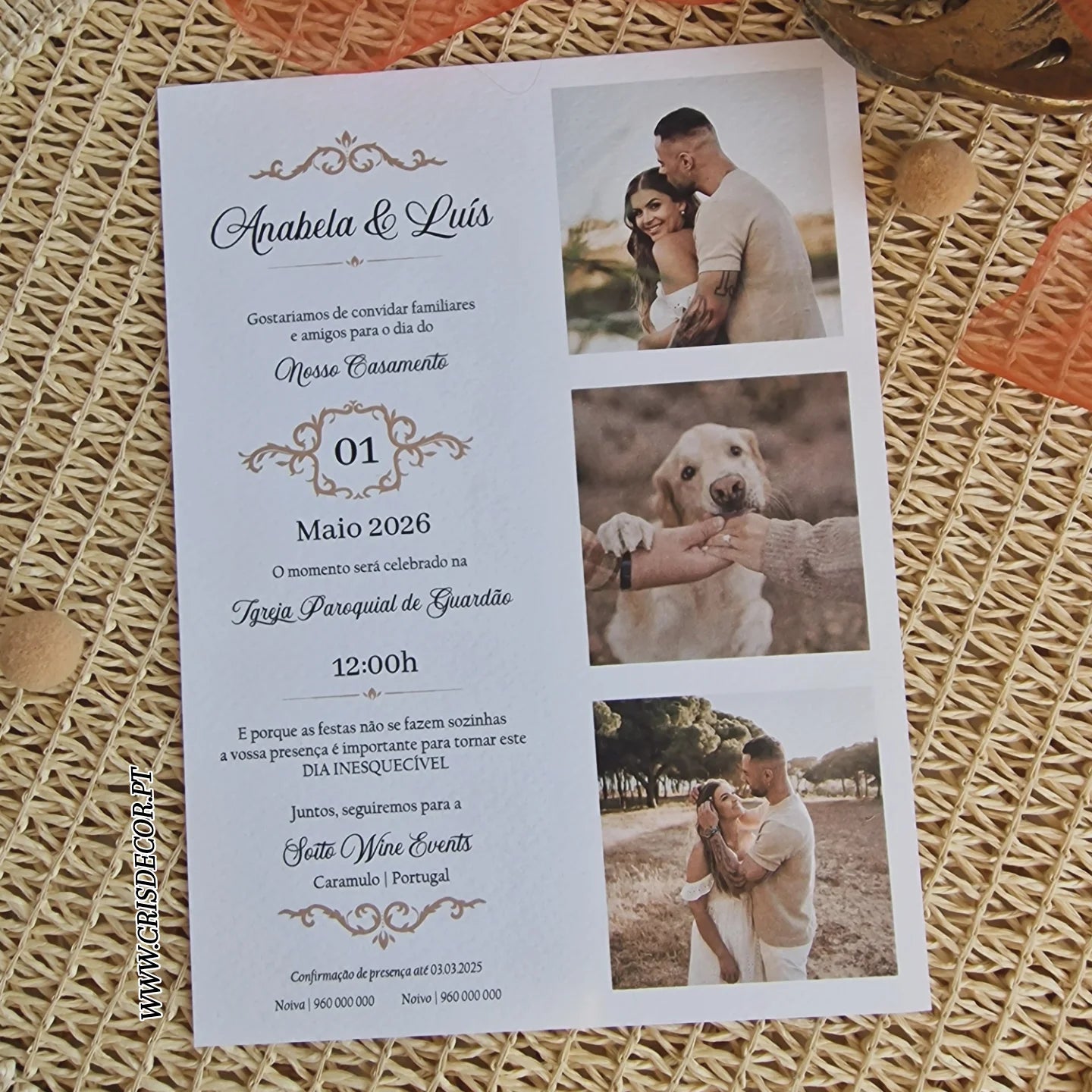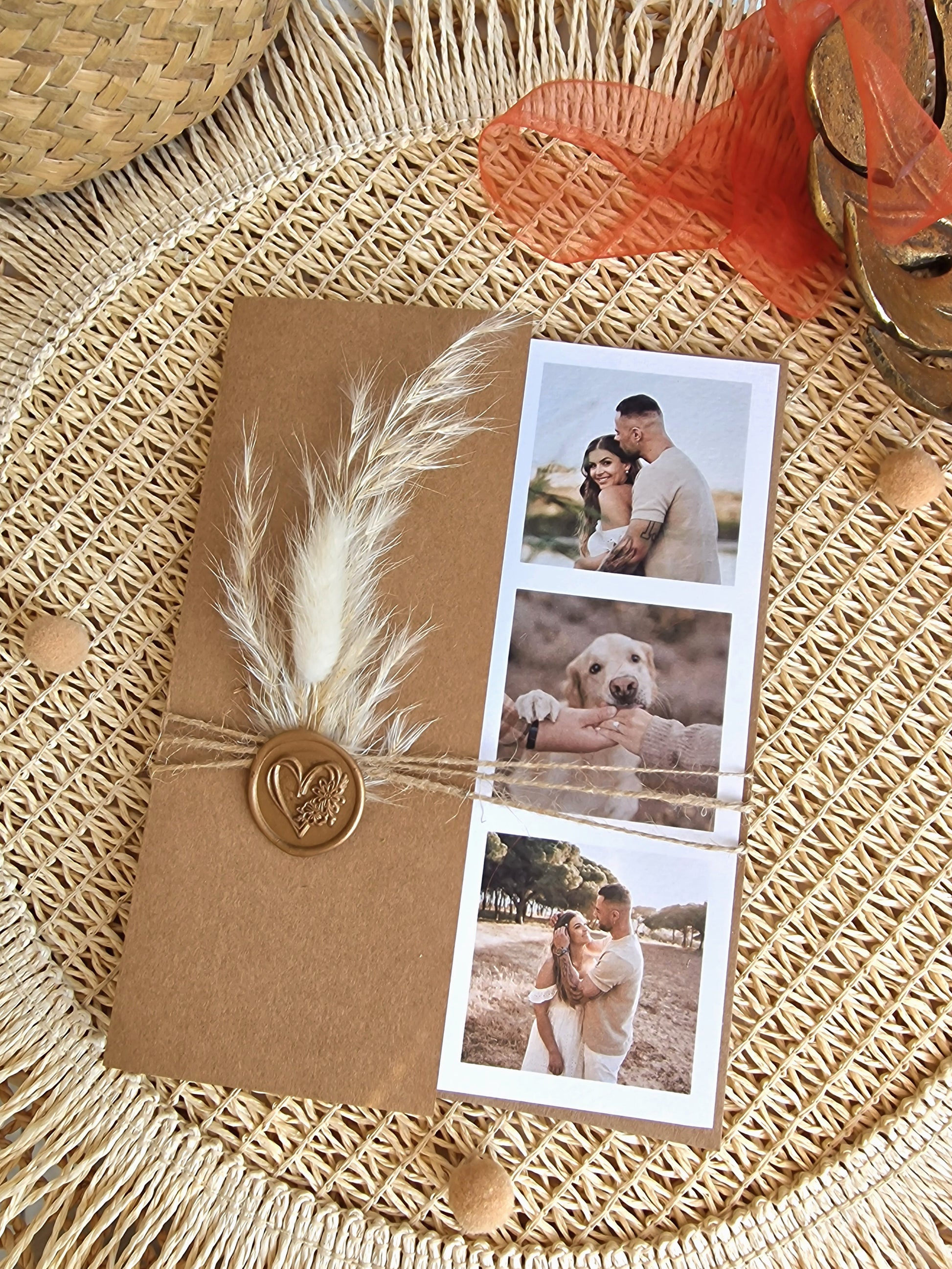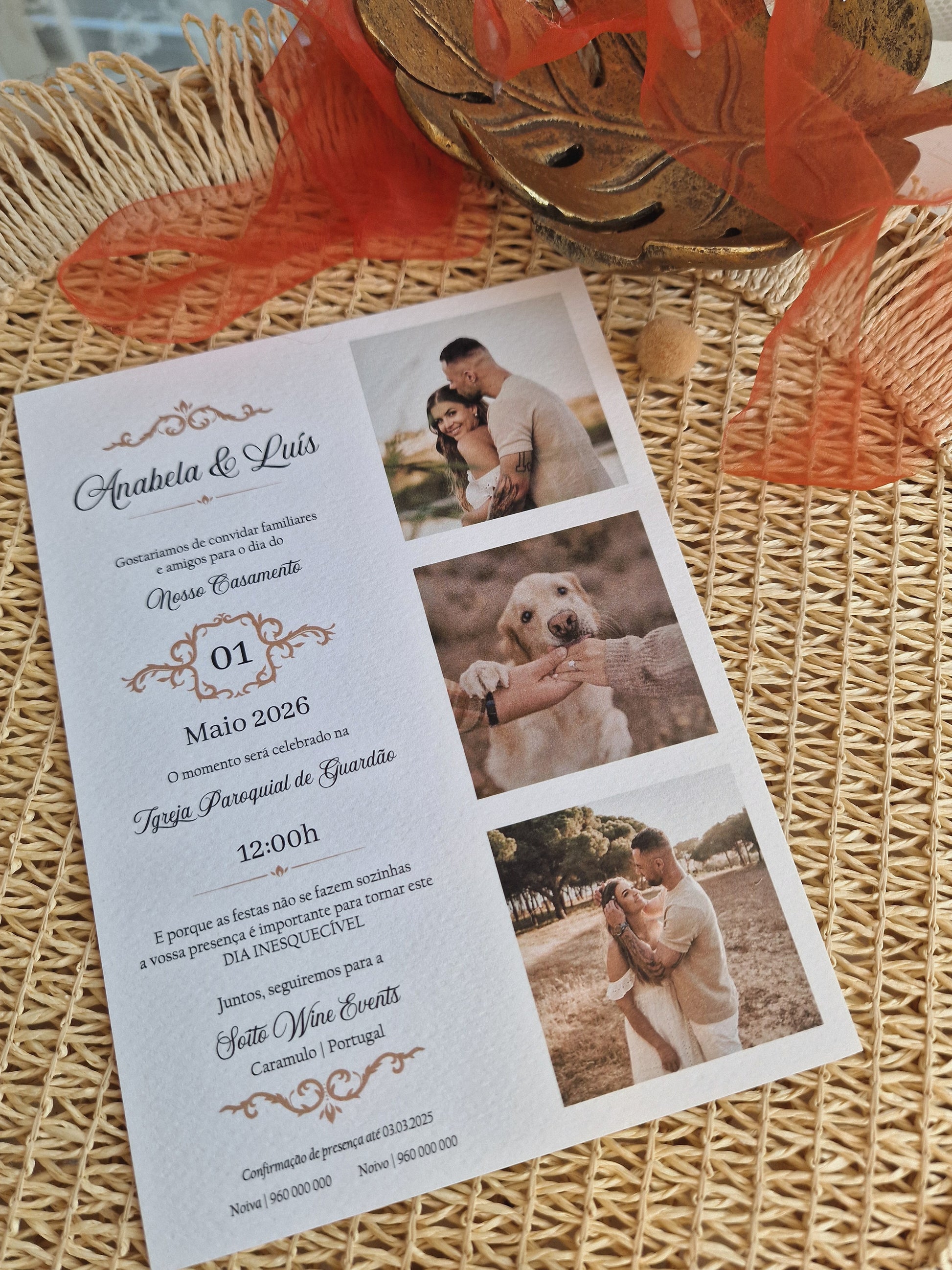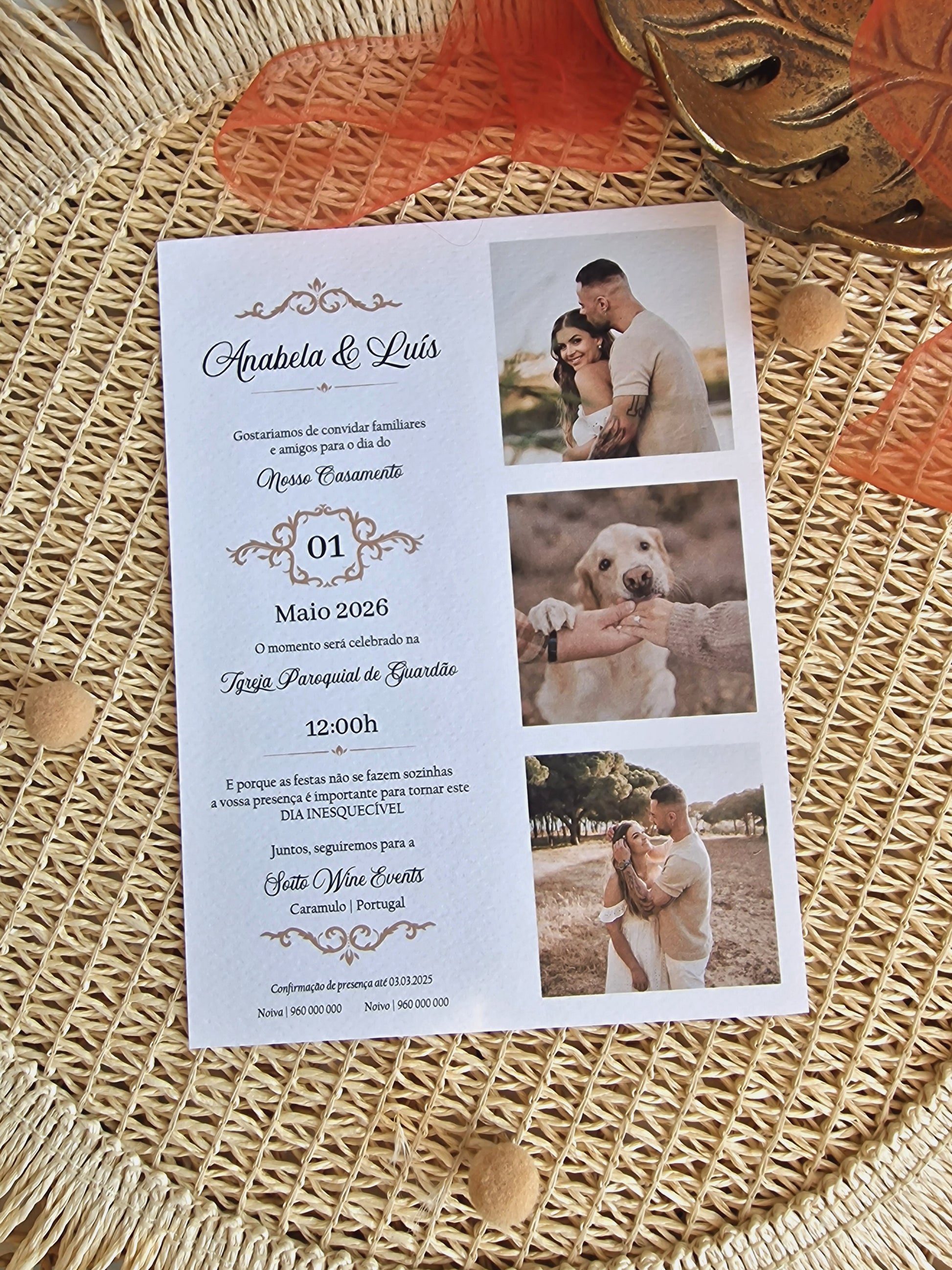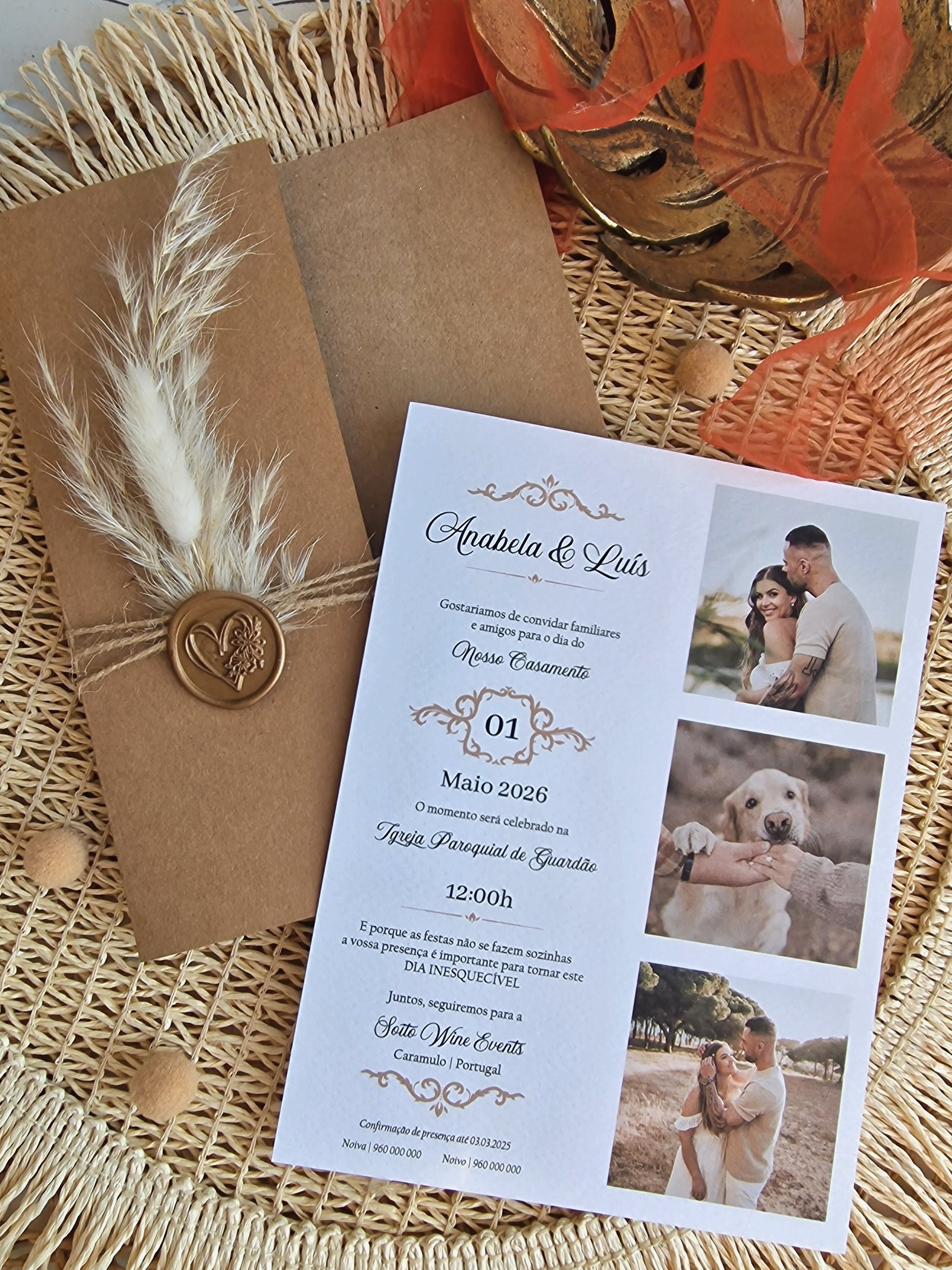 Exterior em papel krafth rústico com Interior deslizante na vertical em papel branco texturado 250gr.