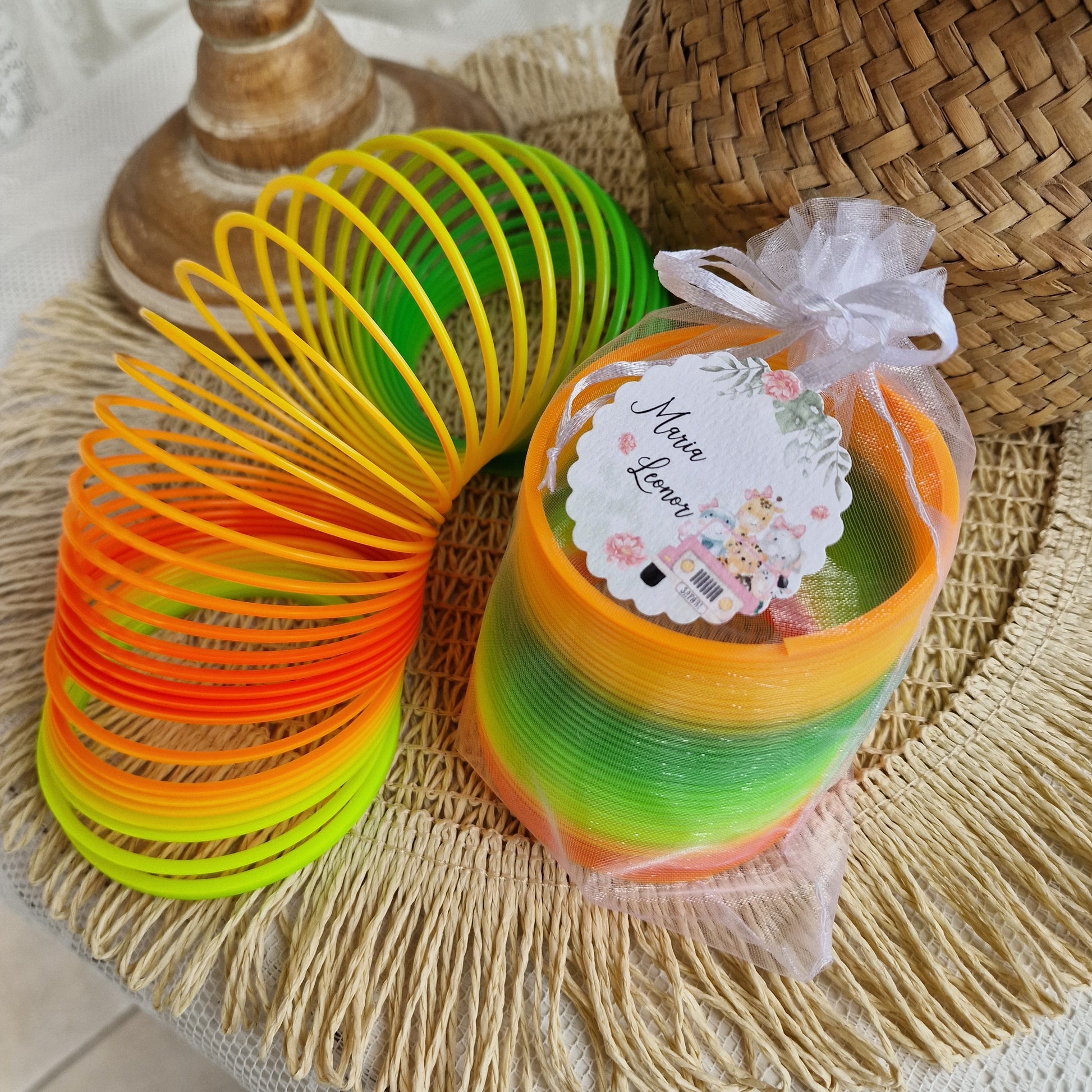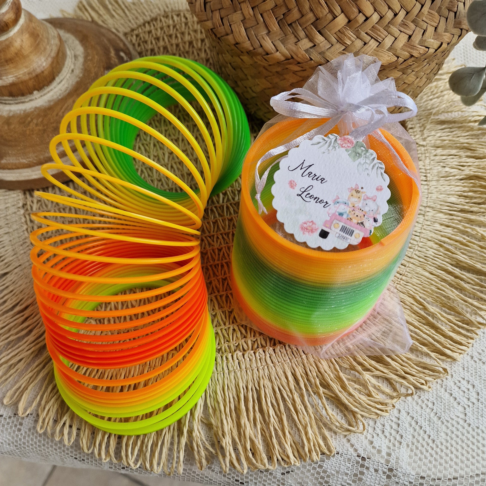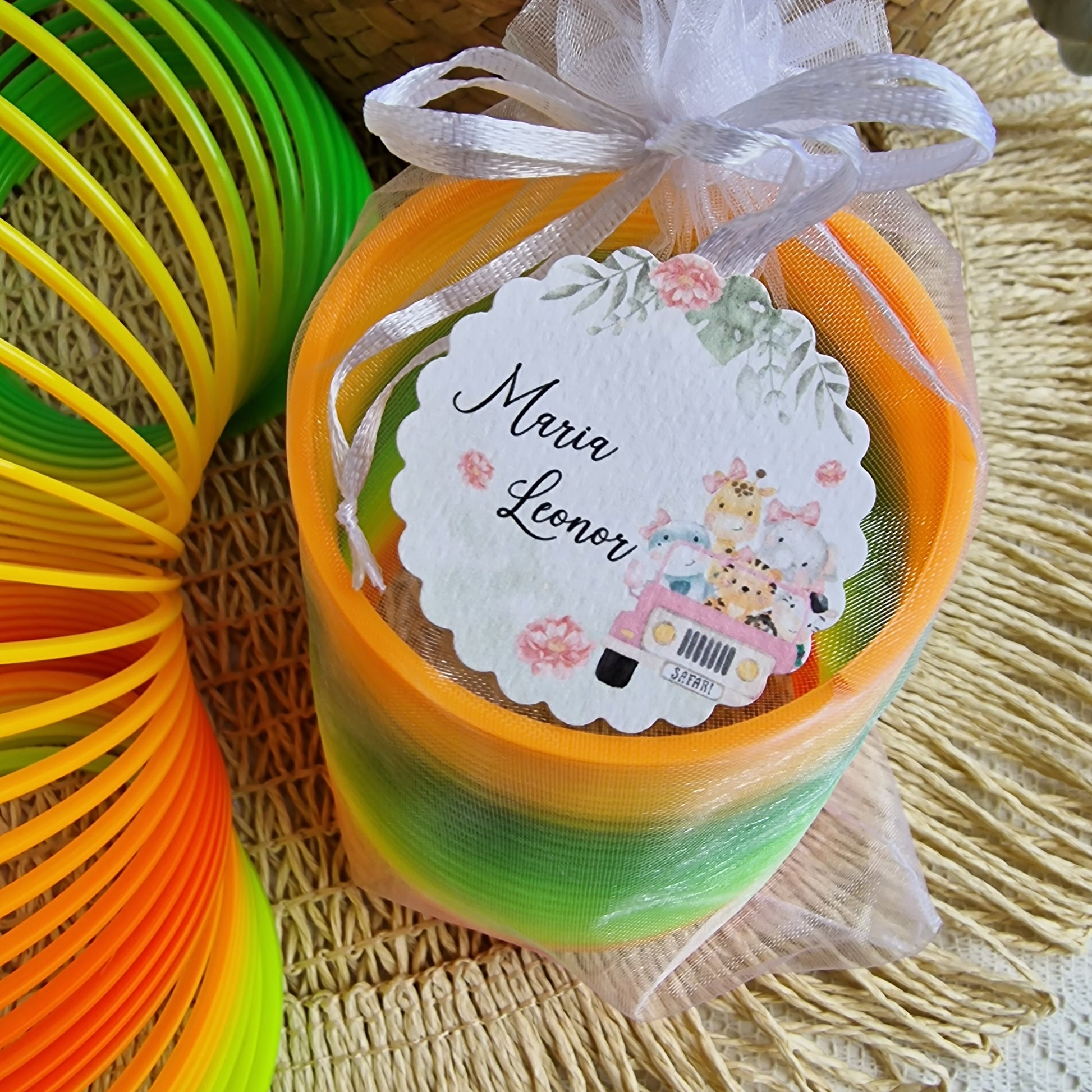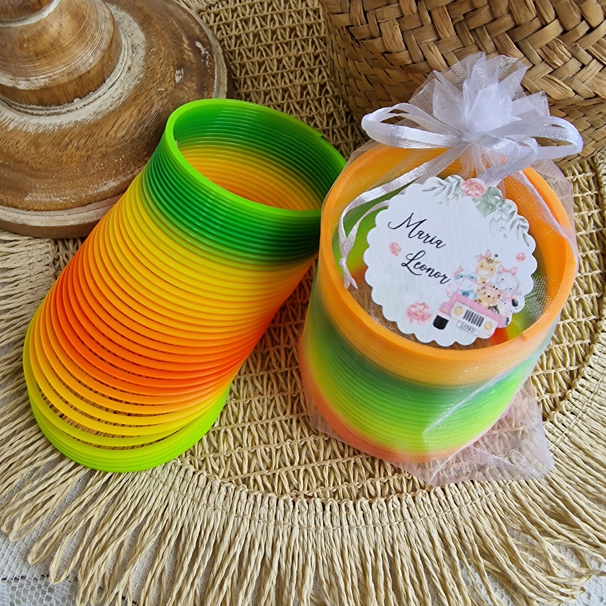 Brinquedo aros coloridos com saquinho de organza e etiqueta incluída