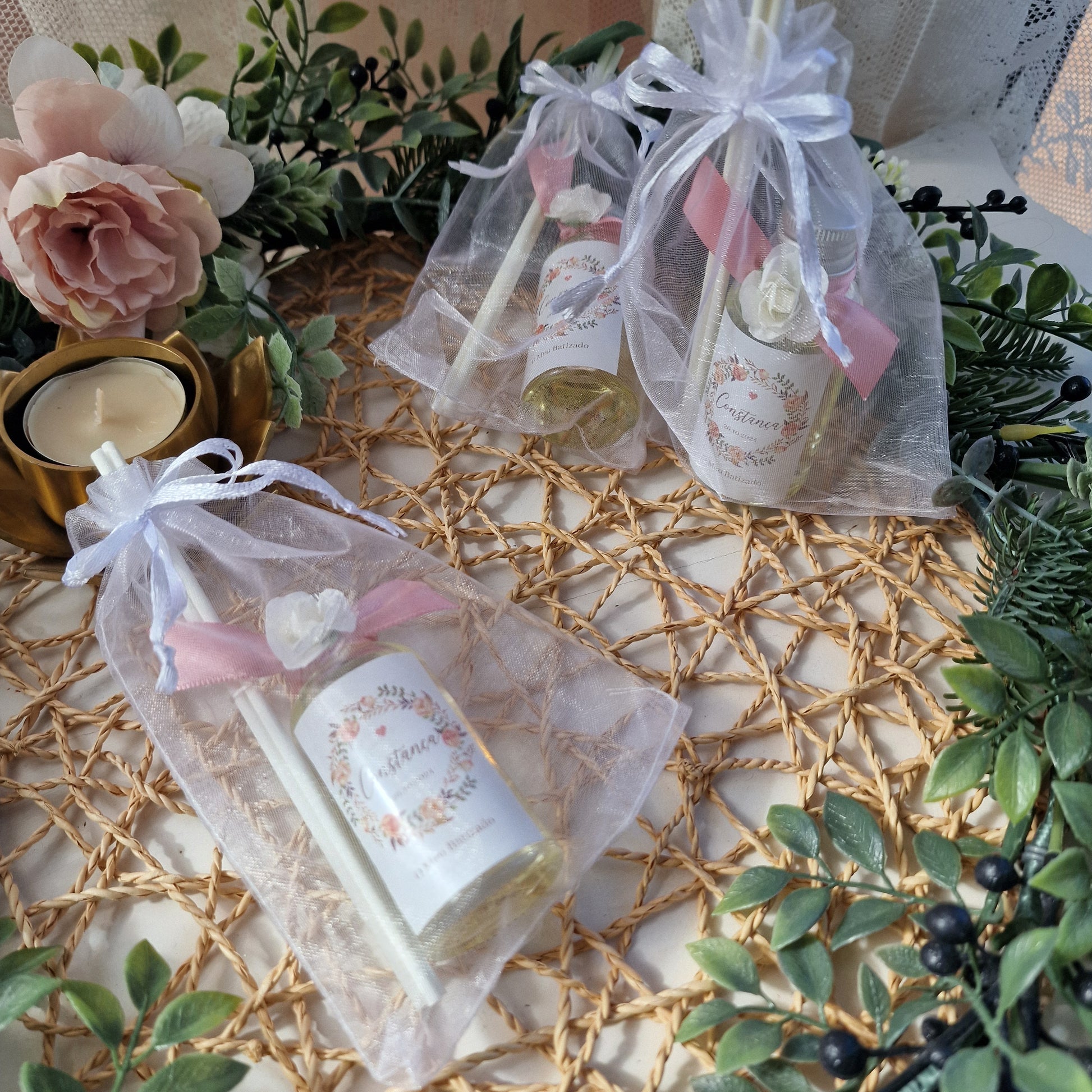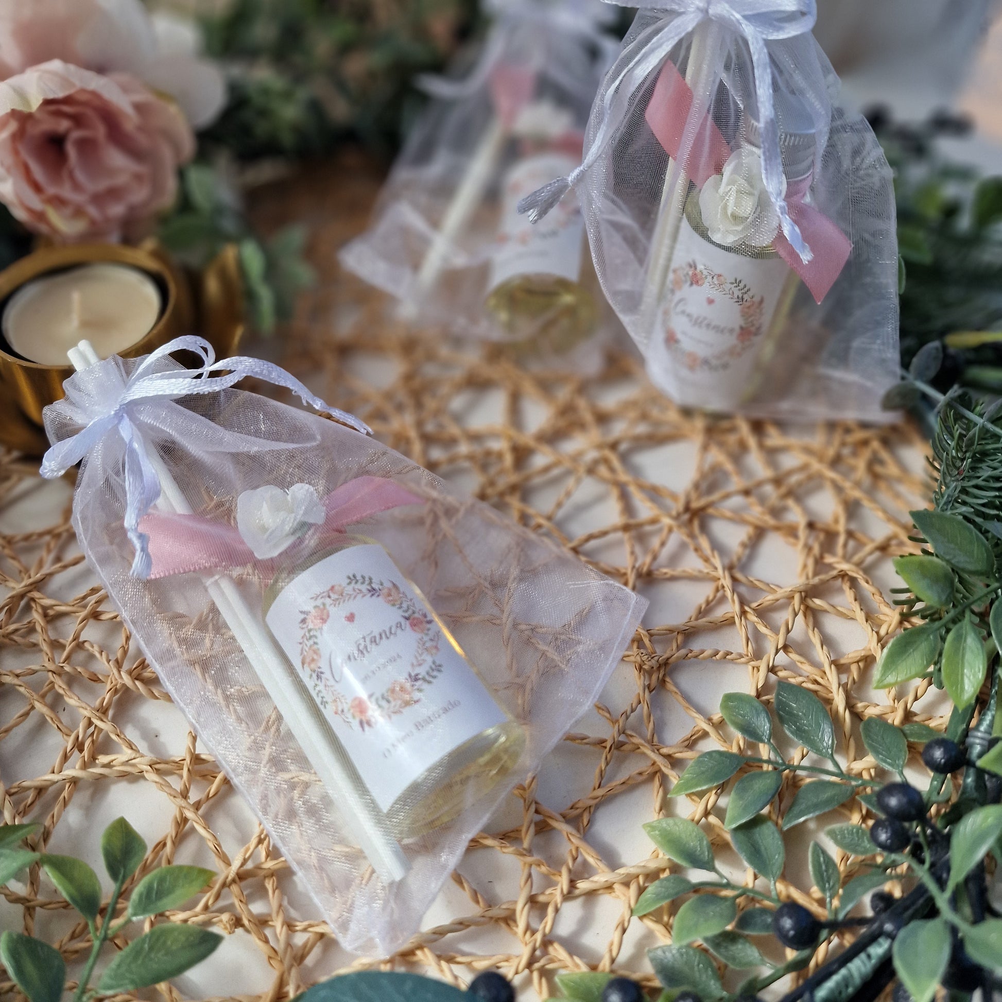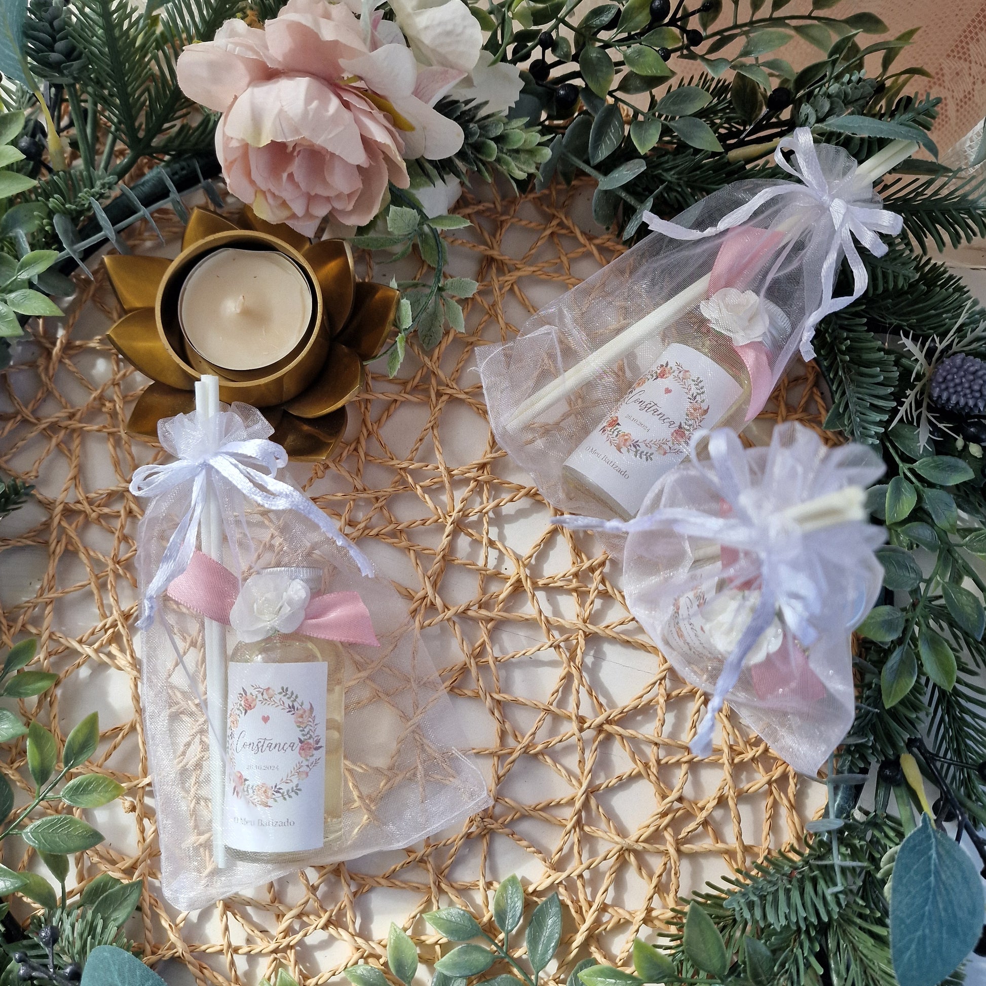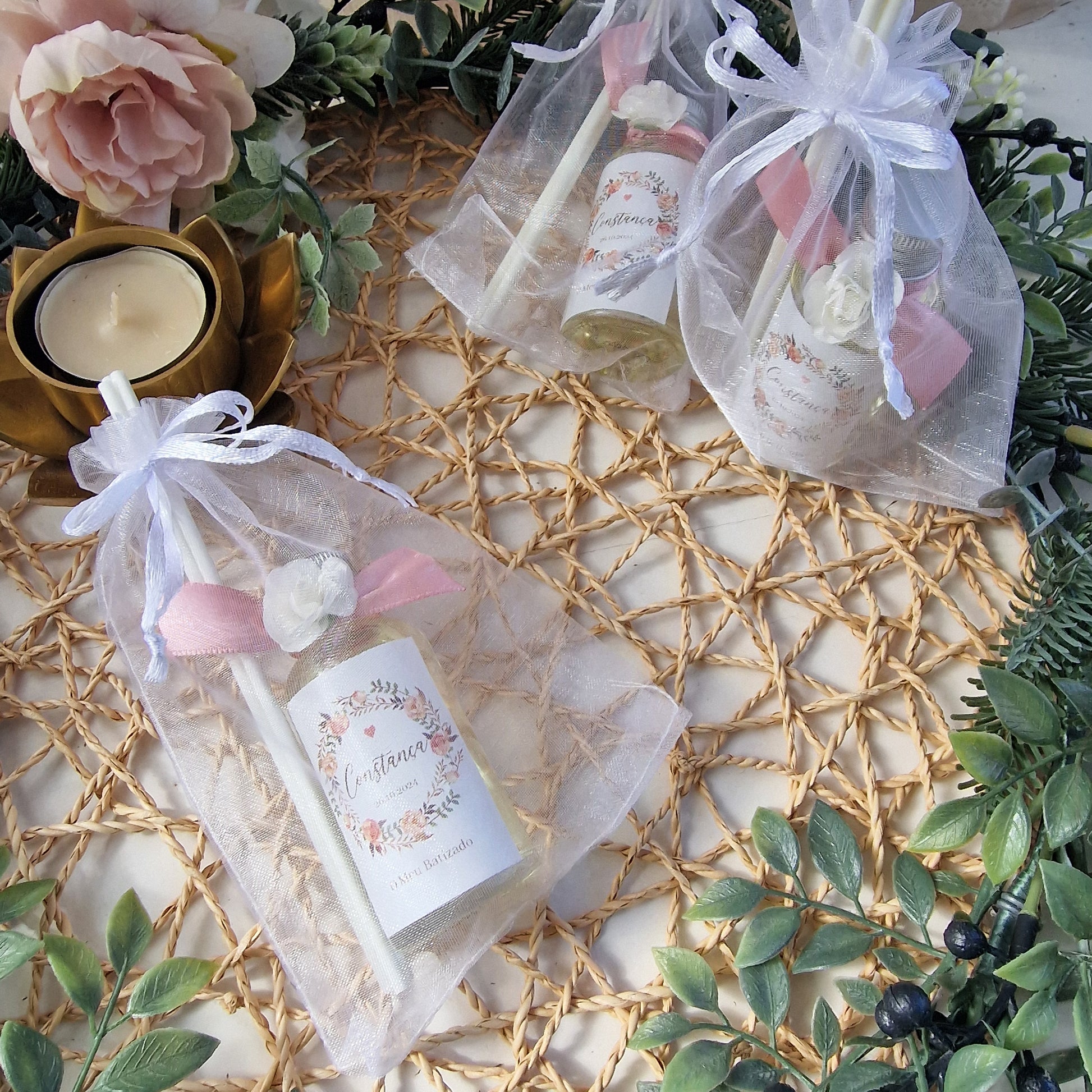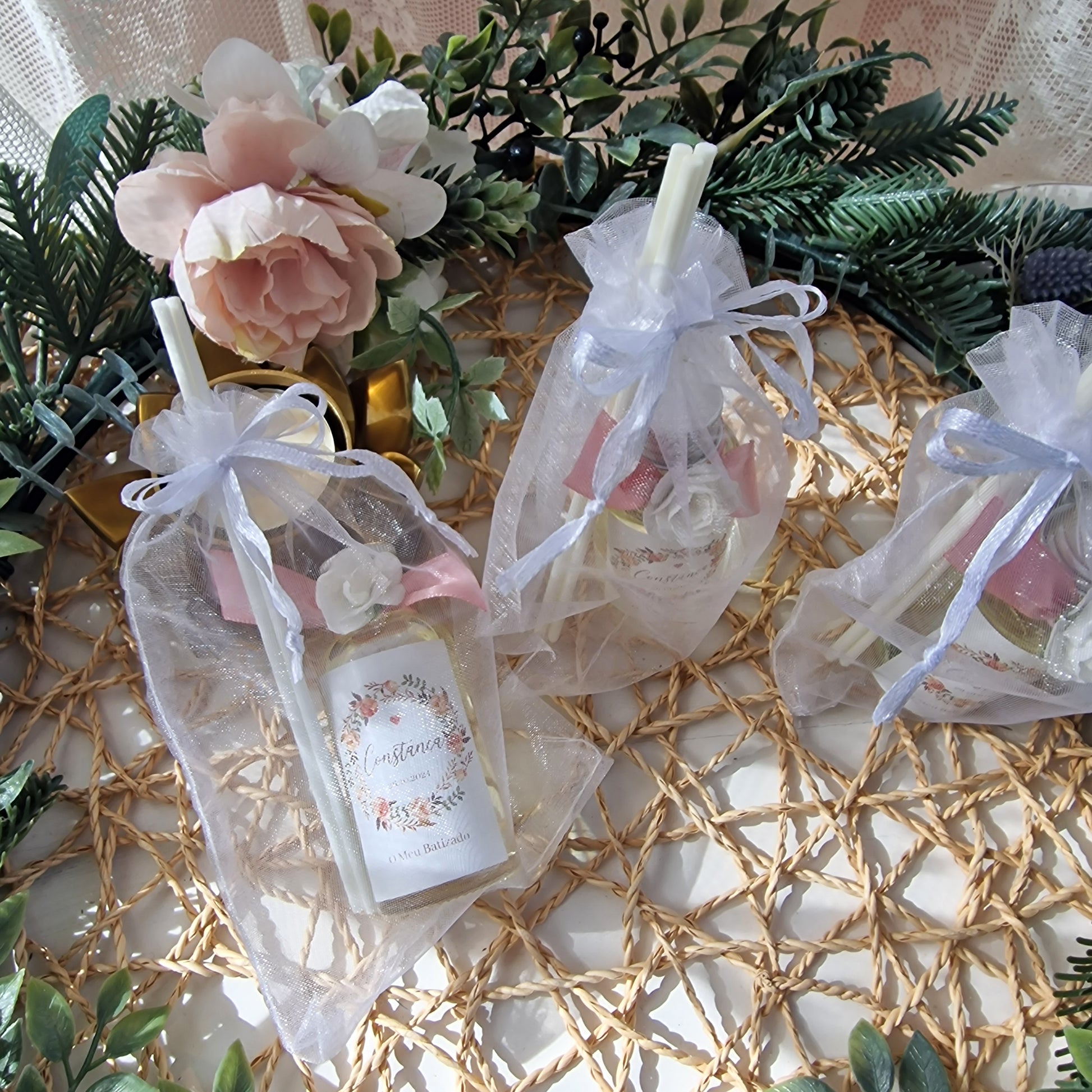 Ambientador / mikado perfumado em frasco de vidro com etiqueta personalizada saco de organza incluído.