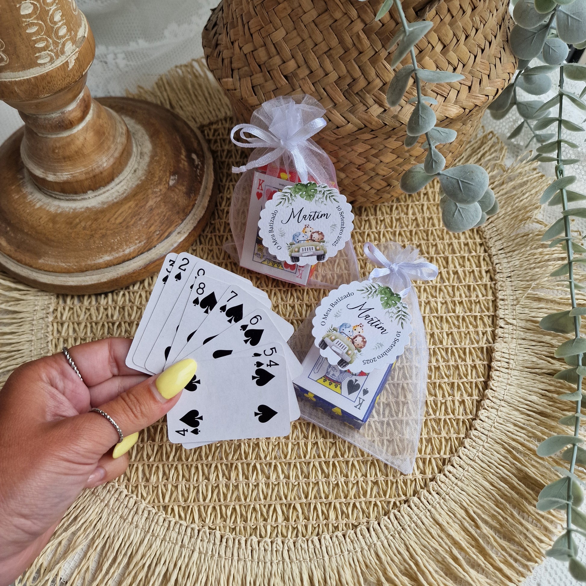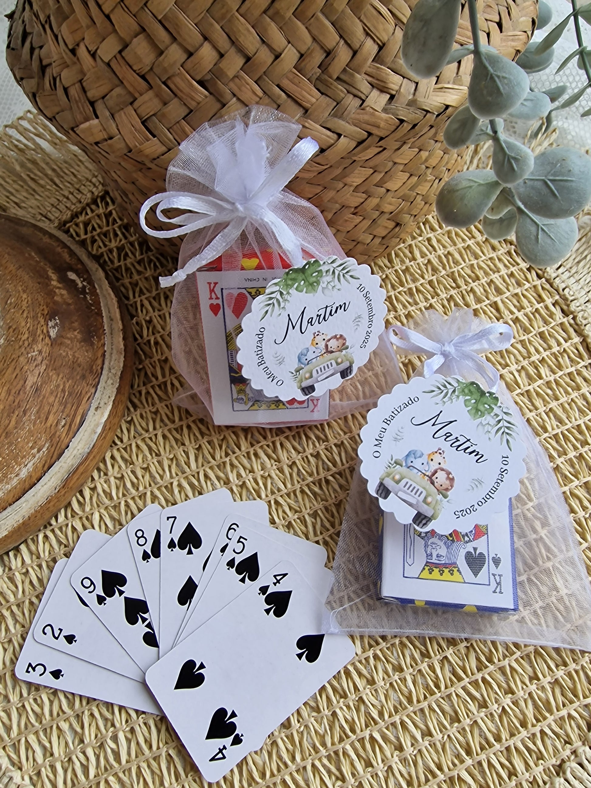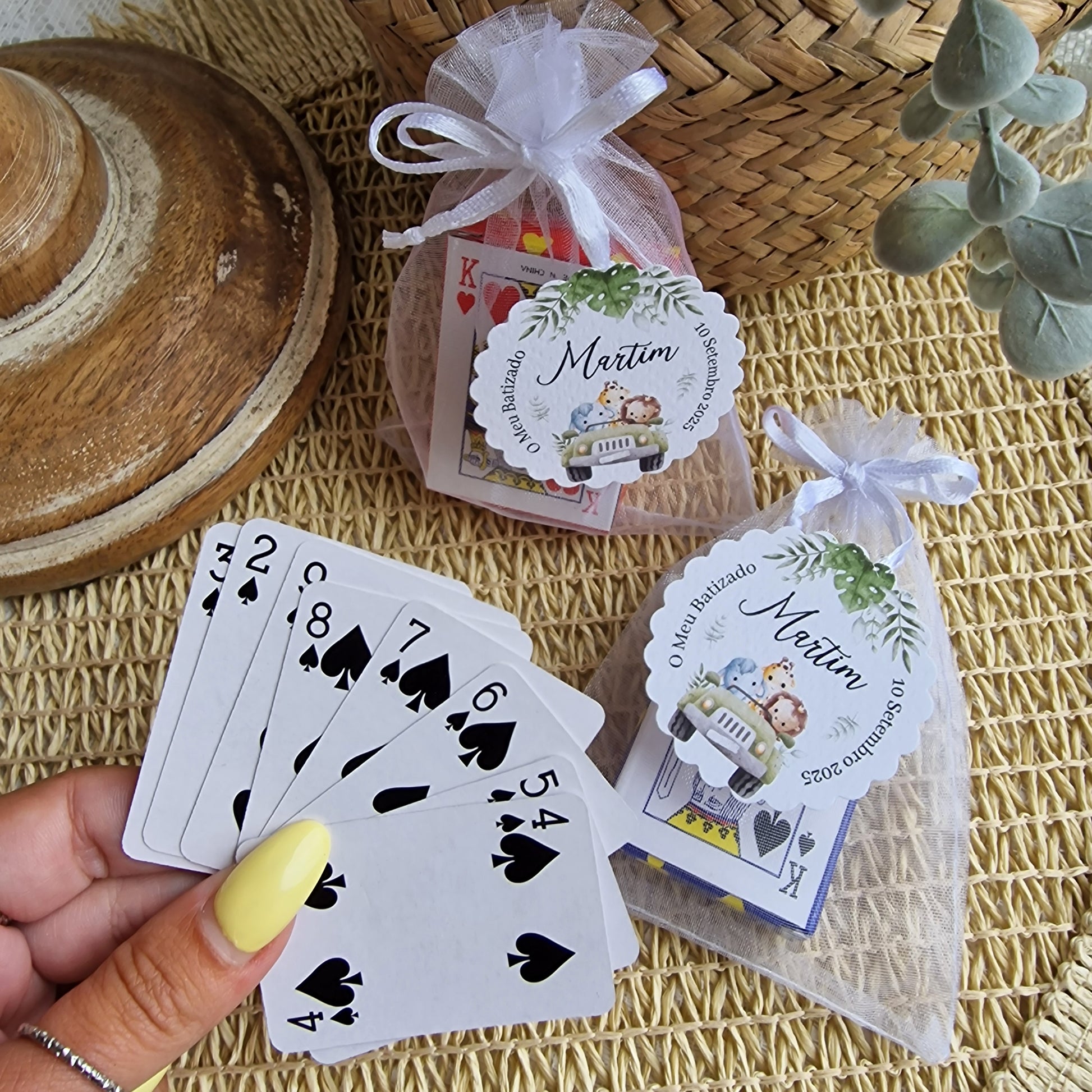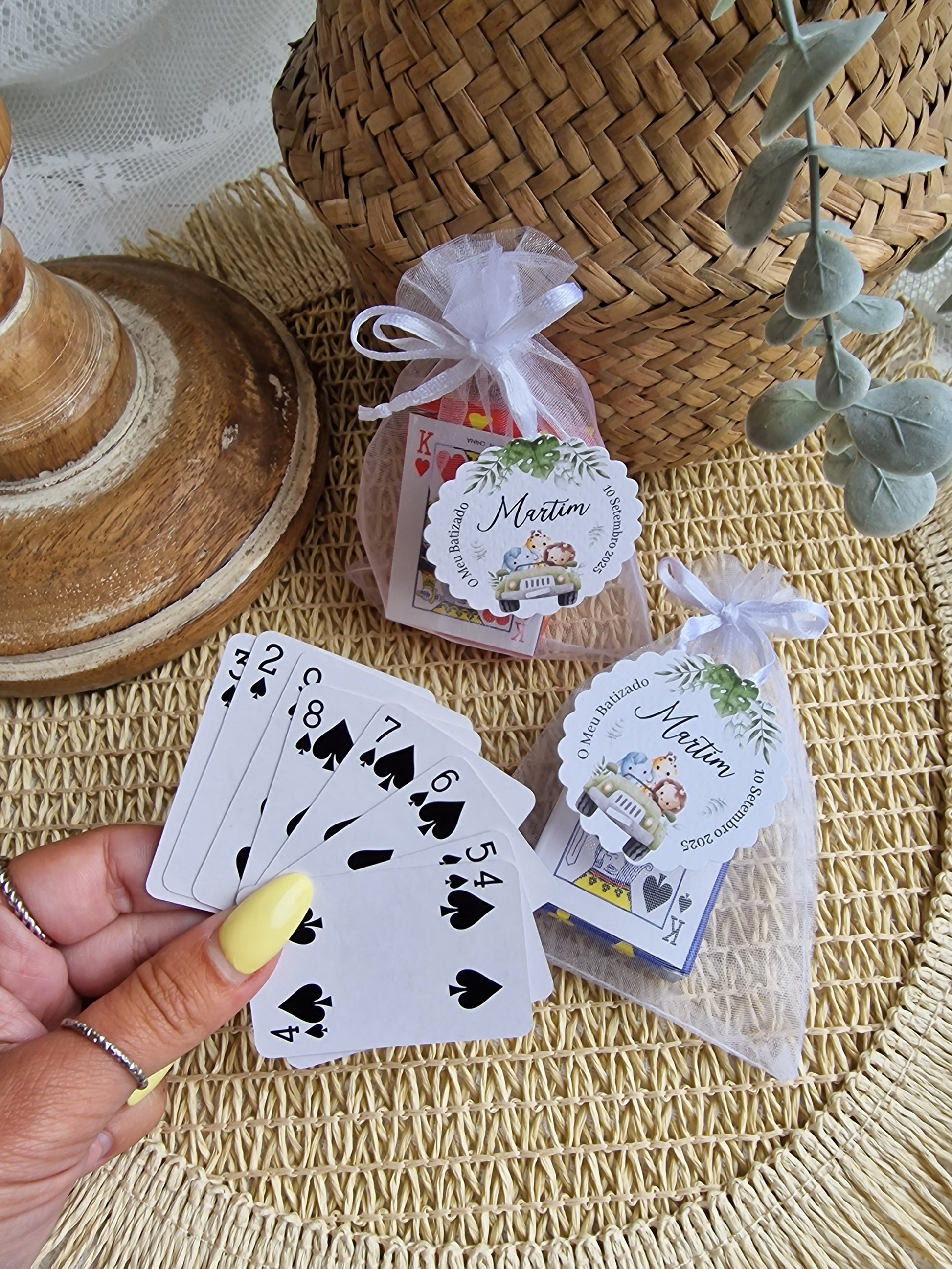 Mini baralho de cartas com saco de organza e etiqueta incluída