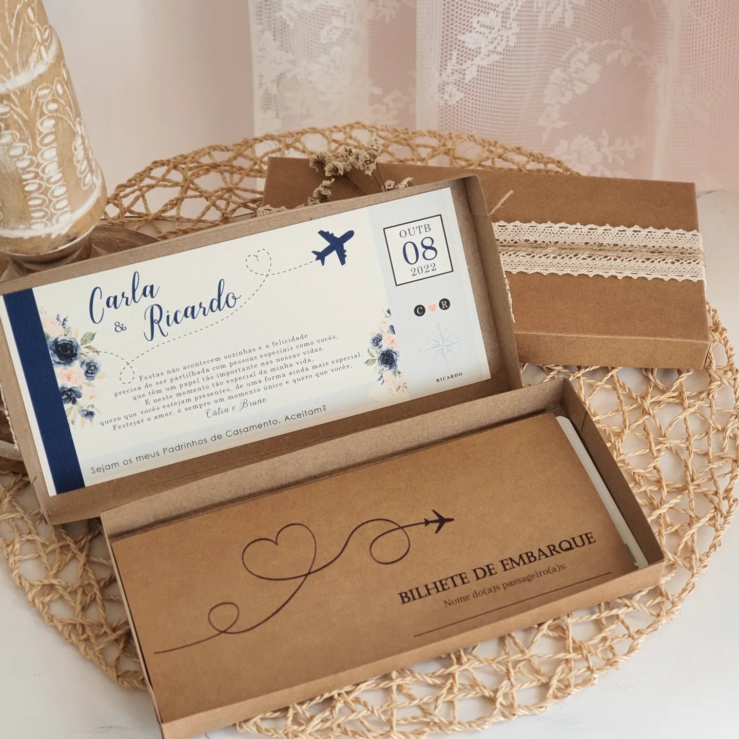 Caixa com convite e dedicatória para padrinhos / pais /avós / irmãos / damas de honra