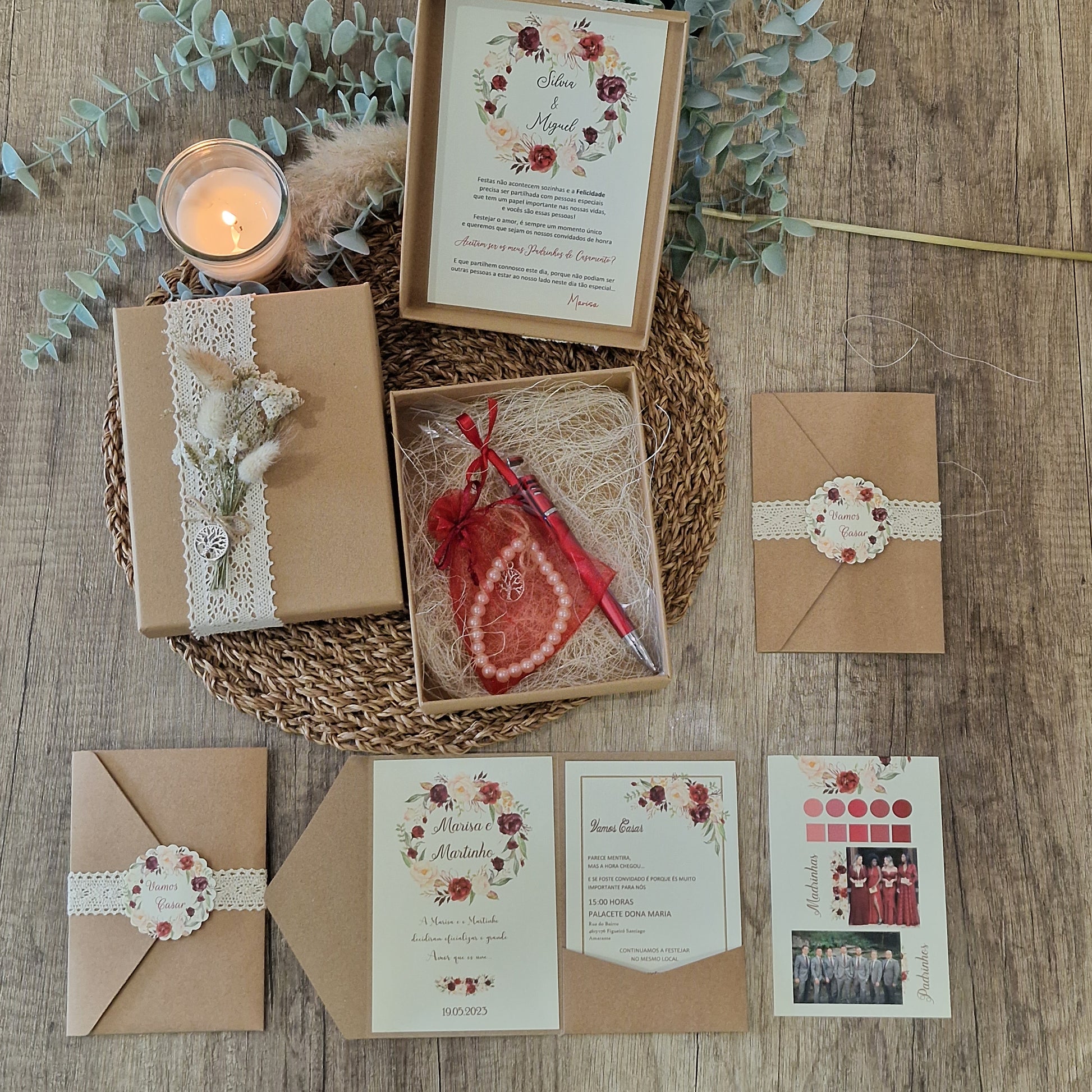 Caixa convite padrinhos especial marsala