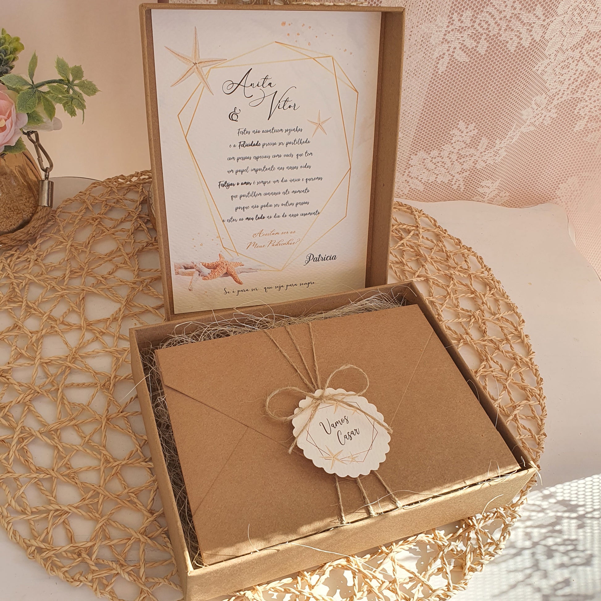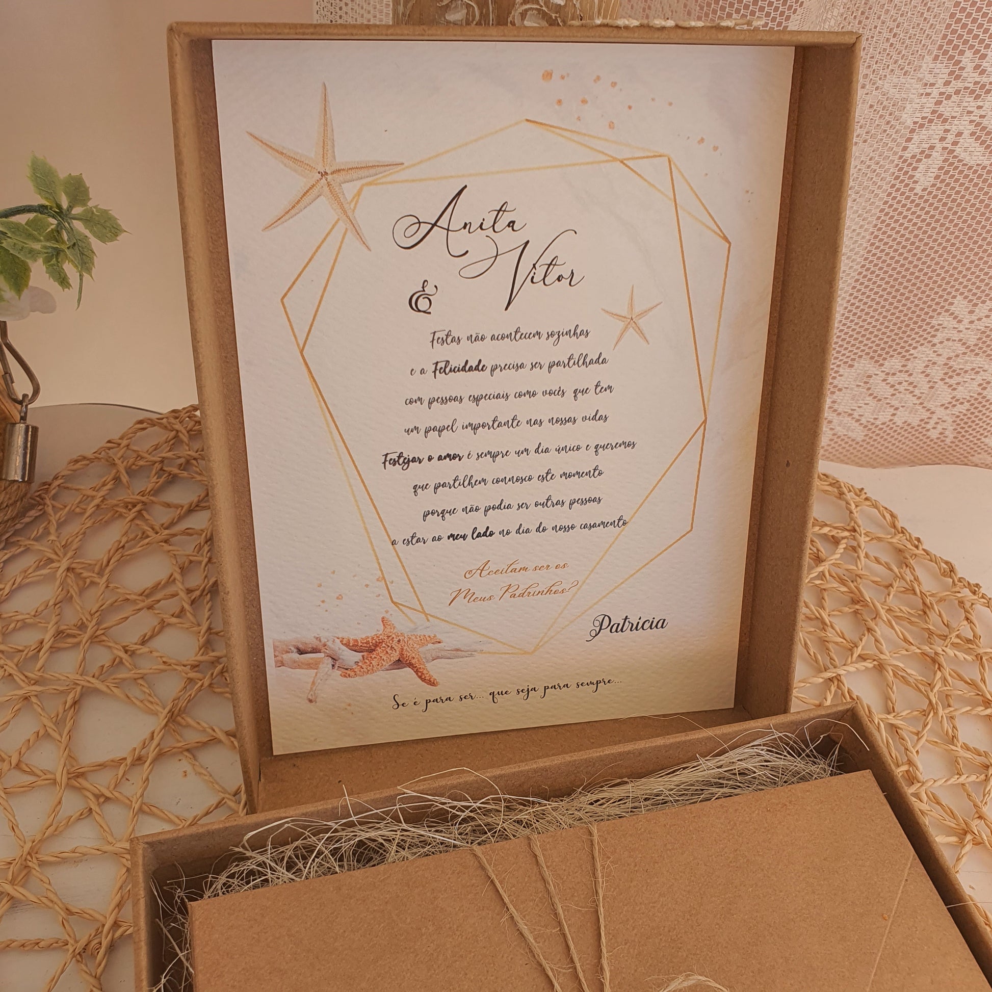 Caixa com convite e dedicatória para padrinhos / pais /avós / irmãos / damas de honra