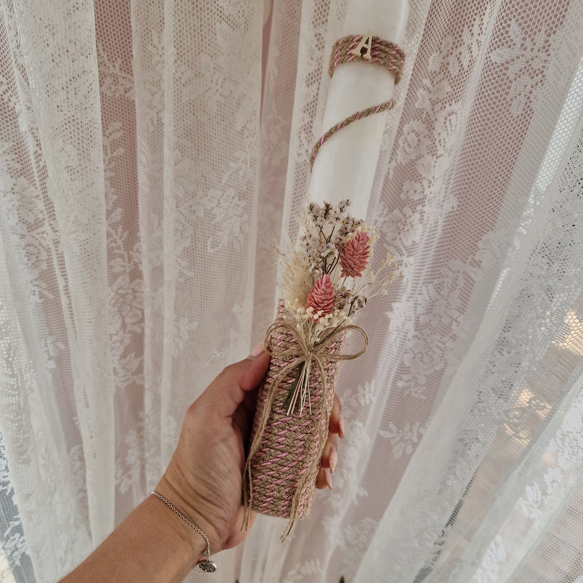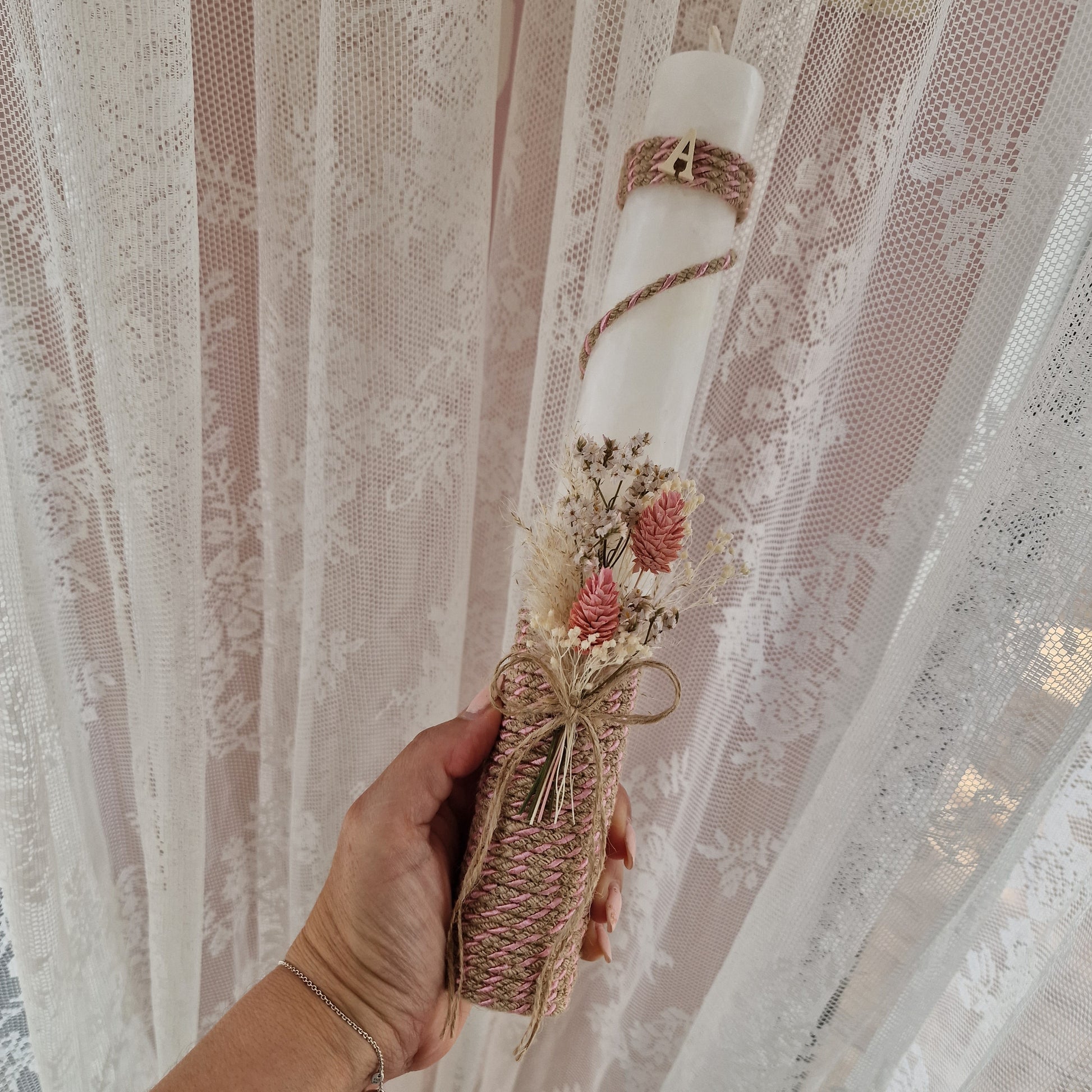 Vela artesanal personalizada  em rústico  com letra do nome em madeira
